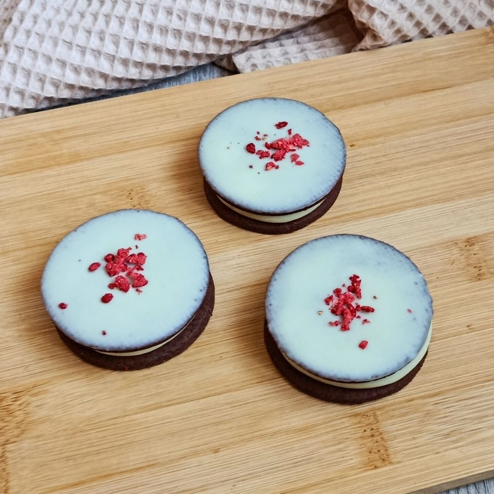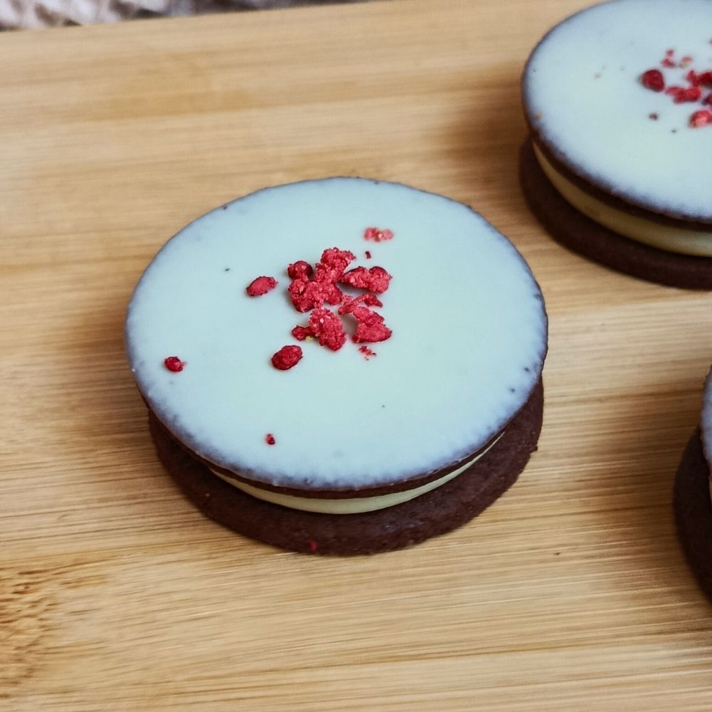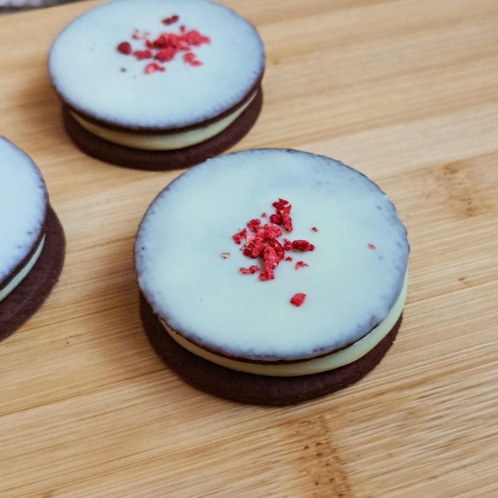 Kakaová amiriska inspirovaná švarcvaldským dortem přináší oblíbenou kombinaci čokolády a višní v moderním pojetí. Křehká tmavá sušenka ukrývá jemnou náplň z bílé čokolády a višní, která je krásně vyvážená mezi sladkostí a ovocnou kyselinkou.