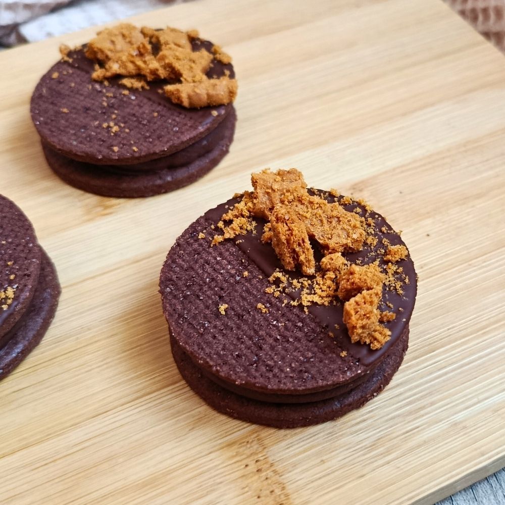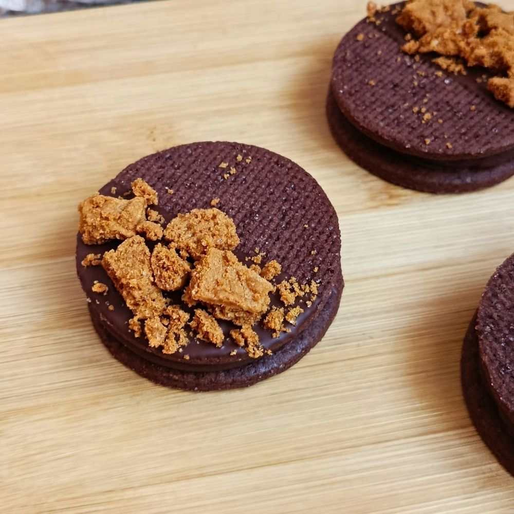 Kakaová amiriska z křehkého máslového těsta potěší všechny milovníky výrazných a plných chutí. Sušenka je slepená jemnou ganache z hořké čokolády, která dodává dezertu příjemnou hloubku.
