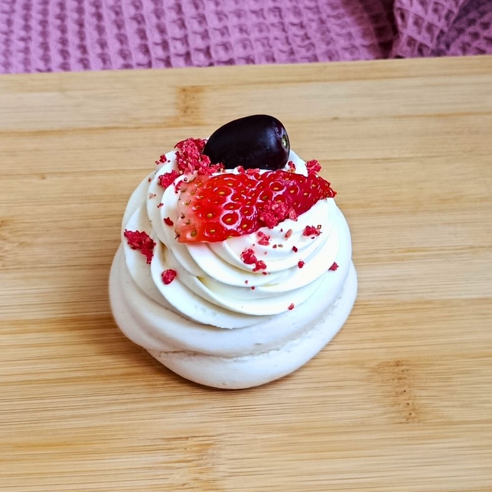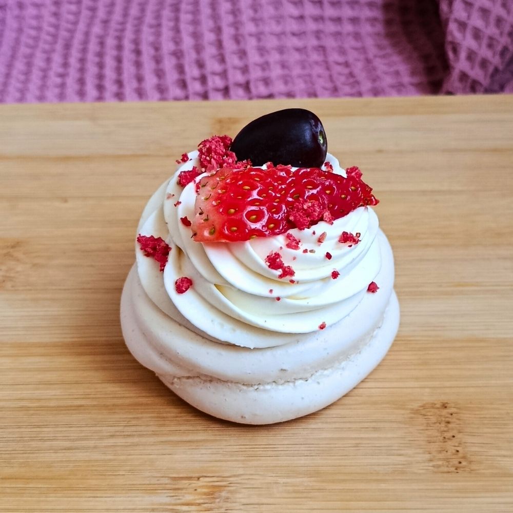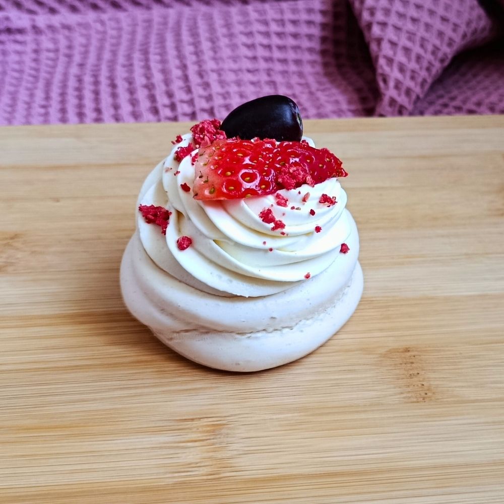 Lehká a nadýchaná sněhová mini Pavlova s křehkou krustou a jemně vláčným středem je ideální volbou pro milovníky svěžích dezertů. Základ doplňuje jemný krém z mascarpone, který dodává dezertu hebkost a krémovou chuť.