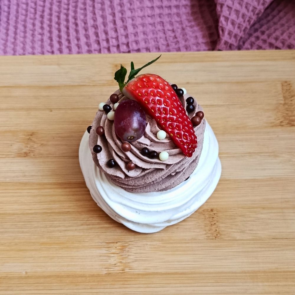 Tato křehká a nadýchaná sněhová Pavlova s jemně vláčným středem potěší všechny milovníky čokolády. Dezert je doplněný sametovým krémem z mascarpone a hořké čokolády, který dodává plnou a intenzivní chuť.